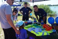 Dla wypoczywających nad wodą przygotowano specjalne warsztaty edukacyjno – informacyjne dotyczące bezpieczeństwa oraz pokaz ratownictwa wodnego. Policjanci uczyli o bezpiecznych zachowaniach nad wodą oraz na drogach. Przestrzegali przed eksperymentowaniem z używkami. Promując akcję ‘Pływam bez promili” zwracali uwagę na fakt, że połączenie alkoholu z pływaniem może skończyć się tragicznym wypadkiem. Dla dorosłych zorganizowano konkurs w alkogoglach, dzieci i młodzież zaproszono do zabaw. Chętni pod okiem ratowników mogli nauczyć się resuscytacji i dowiedzieć się jak reagować, gdy jest się świadkiem wypadku. Dużą atrakcją był pokaz pojazdów różnych służb. Do plażowiczow trafiły tematyczne koszulki, piłki plażowe, smycze oraz odblaski.