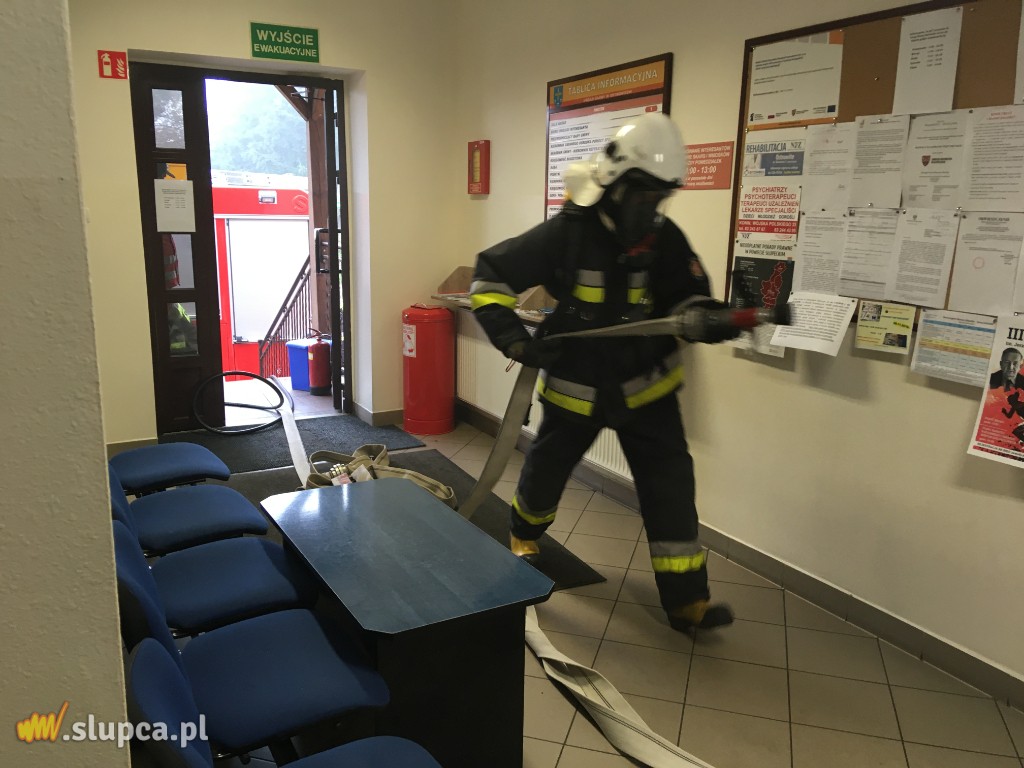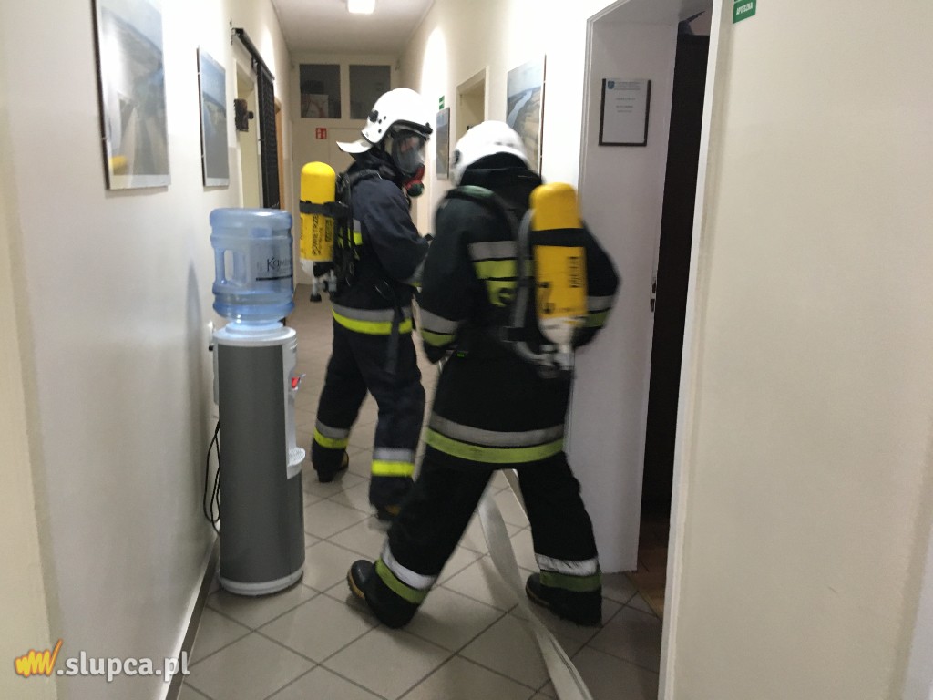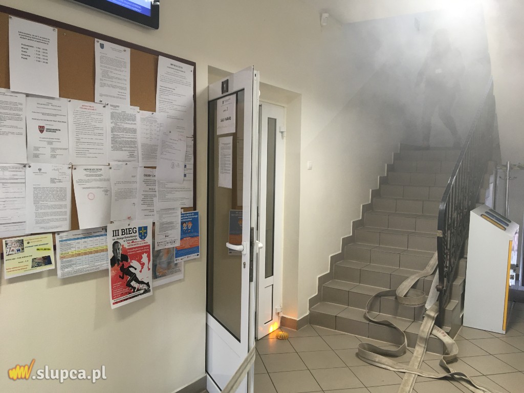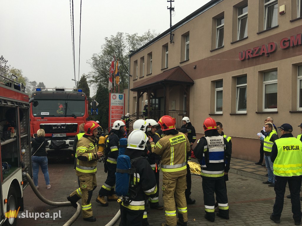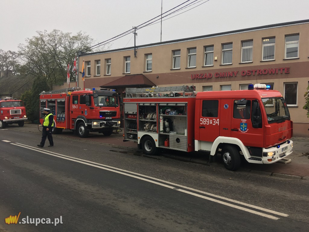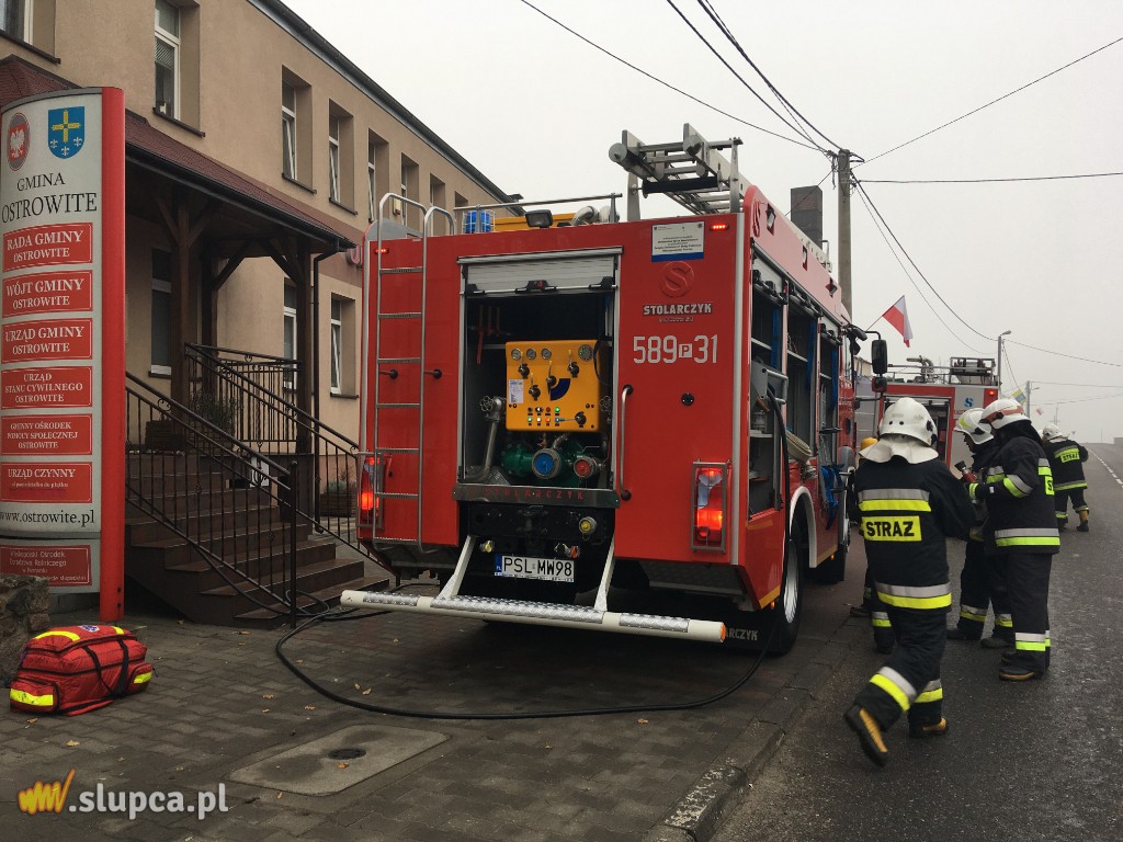 Pierwszy: w wyniku celowego działania nieznanych sprawców powstaje pożar w jednym z pomieszczeń Urzędu Gminy w Ostrowitem. Pożarem w początkowej fazie objęte jest jedno pomieszczenie, natomiast zadymienie rozprzestrzenia się korytarzem.