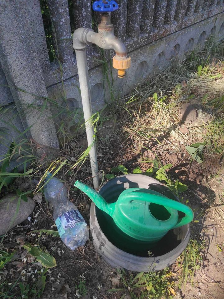 Proponuję się przejść wzdłuż płotu pd strony lasu ludzie poprzewieszali sobie grabki za płot, niektóre powiadały do rowu, ludzie też kładą je przy swojej posesji… albo niektórzy są tak kulturalni że zamiast się podzielić konewką to biorą obie i z 2 chodzą a ja musze z wkładem do zniczy latać i podlewać, bo on ma trawę do podlania … :/ są też osoby które pobrały sobie narzędzia do domu …