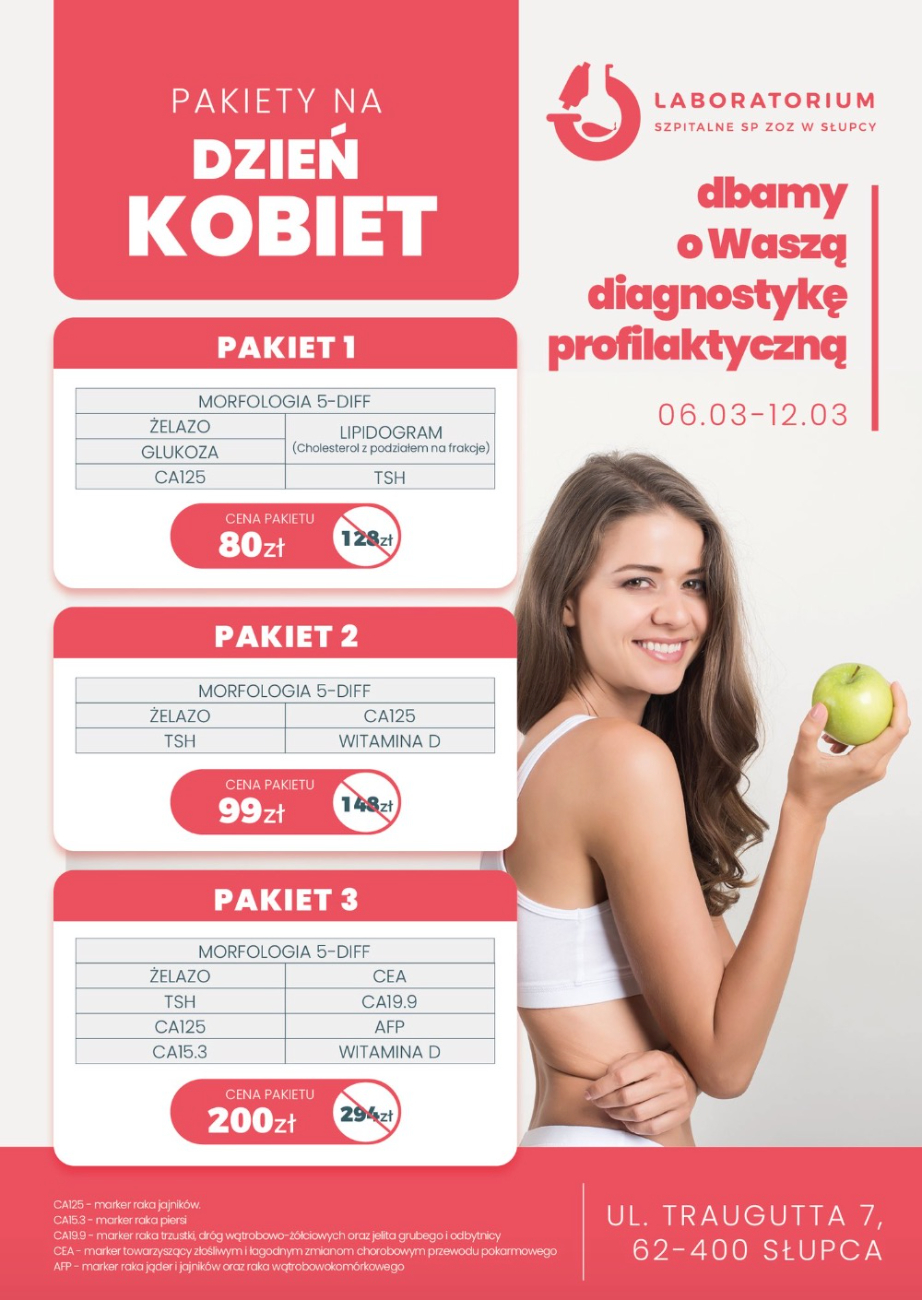 Szpitalna laboratorium w Słupcy przygotowało promocje na zbliżający się Dzień Kobiet i Dzień Mężczyzn.