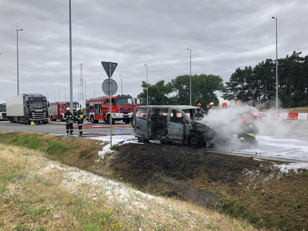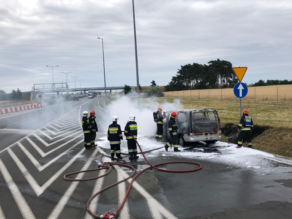 6 lipca po godz. 7.00 dyżurny Stanowiska Kierowania PSP w Słupcy otrzymał zgłoszenie o pożarze busa na autostradzie A2, tuż za bramkami opłat Lądku. – Na miejsce zadysponowano dwa zastępy straży pożarnej. Po dojeździe strażacy zastali samochód, który znajdował się cały w ogniu. Pojazdem poruszały się dwie osoby, które opuściły go przed przybyciem strażaków. Podjęli oni samodzielną próbę ugaszenia samochodu gaśnicą, jednak okazała się ona nieskuteczna. Strażacy ugasili palący się samochód, który uległ całkowitemu spaleniu – informuje Marcin Nachowiak, rzecznik słupeckiej komendy PSP.