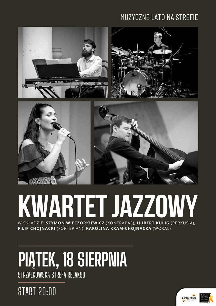 Przed nami kolejny, wakacyjny koncert przy ul. Andrzejewskiego w Strzałkowie. Po powstańczych piosenkach, mocniejszych brzmieniach i rapie przyszła pora na jaz. Przed publicznością wystąpi kwartet jazzowy w składzie: Szymon Wieczorkiewicz (kontrabas), Hubert Kulig (perkusja), Filip Chojnacki (fortepian) oraz Karolina Kram-Chojnacka (wokal). W programie koncertu znajdą się standardy światowego jazzu oraz doskonale znane polskie utwory m.in. Ewy Bem, czy Krystyny Prońko. Koncert już jutro (18.08) o godz. 20-stej.