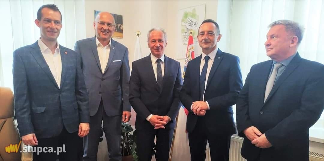 Na zdjęciu od lewej: Jakub Gwit – wójt gminy Powidz; Jacek Bartkowiak – Starosta Powiatu Słupeckiego, Piotr Gruszczyński – Starosta Powiatu Gnieźnieńskiego, Mariusz Mądrowski – członek zarządu powiatu gnieźnieńskiego, Wojciech Krawczyk – dyrektor Wydziału Komunikacji Starostwa Powiatowego w Gnieźnie.