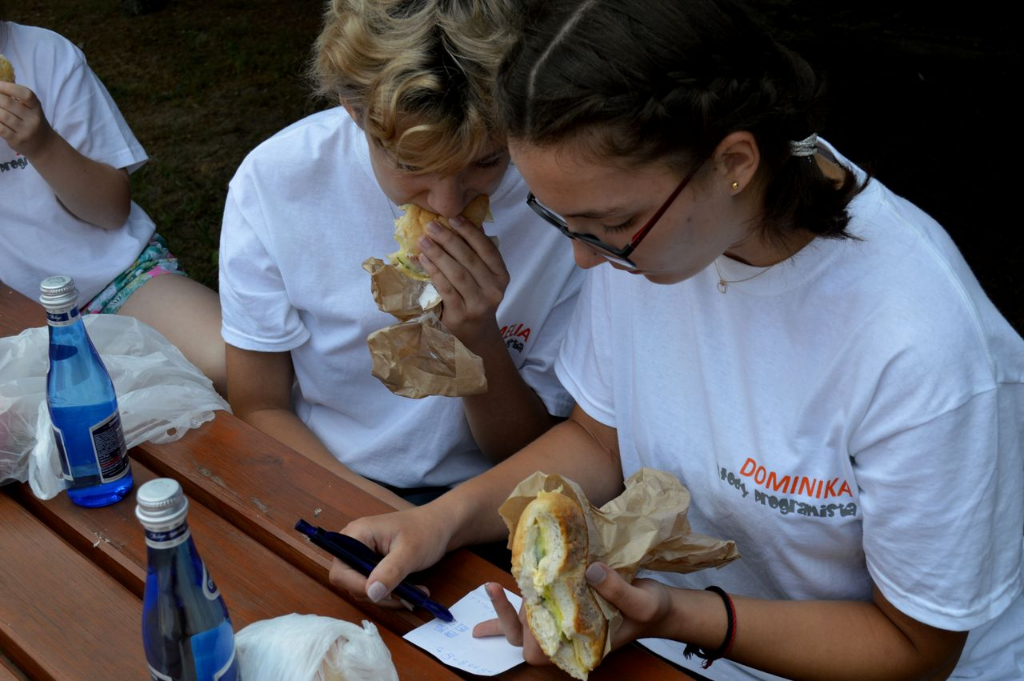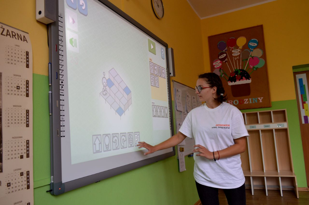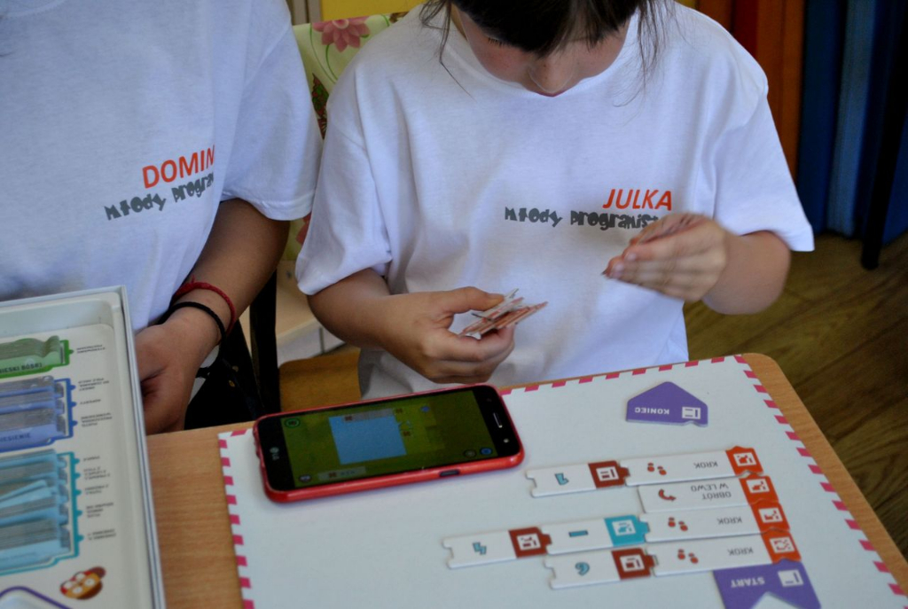 Aż trudno uwierzyć z jaką łatwością uczestnicy warsztatów – siedmio czy ośmiolatkowie – samodzielnie tworzyli algorytmy zawierające takie podstawowe pojęcia programistyczne jak pętla, instrukcja warunkowa, zmienne czy funkcje, z jaką radością dziesięciolatkowie poznawali i stosowali elementy języka JavaScript czy Python, z jakim zaangażowaniem i zapałem tworzyli kolejne linie kodu i poszukiwali rozwiązań problemów.