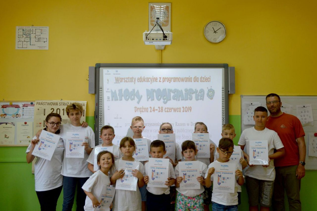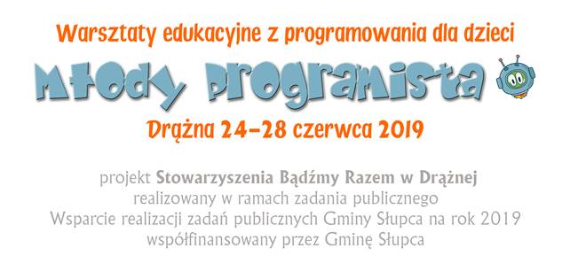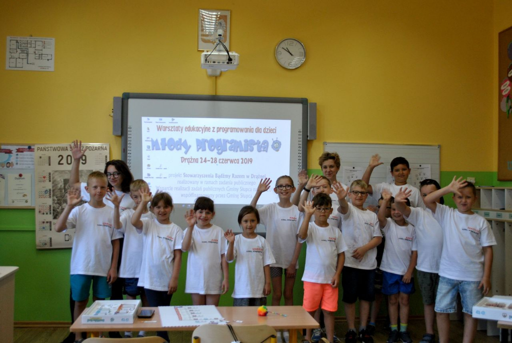 W dniach 24-28 czerwca 2019r. piętnaścioro dzieci mieszkających na terenie Gminy Słupcaskorzystało z oferty Stowarzyszenia „Bądźmy Razem” w Drążnej i postanowiło początek wakacji spędzić uczestnicząc w Warsztatach edukacyjnych z programowania „Młody programista”.