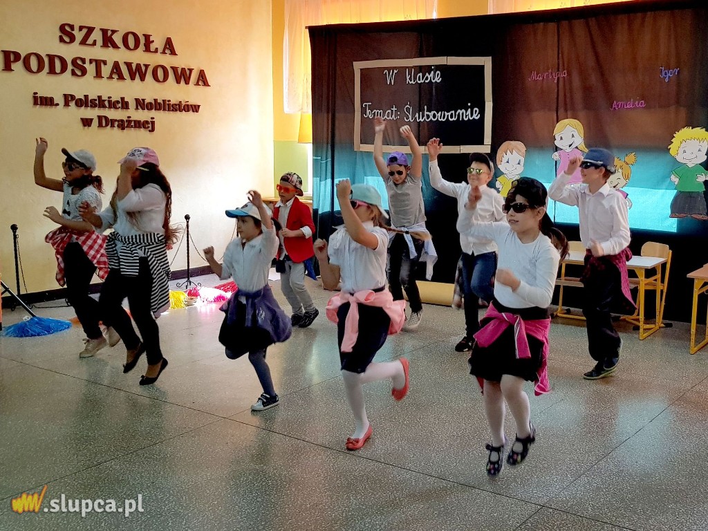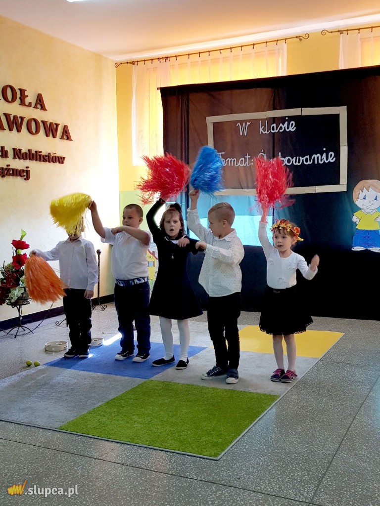 Uroczystość rozpoczęła się od części artystycznej, w której pierwszoklasiści, przygotowani przez wychowawczynię panią Justynę Marszałkowską, zaprezentowali swoje umiejętności wokalne. Kolejnym punktem programu był test sprawnościowy przygotowany przez panią Monikę Barańską. Cześć artystyczną zakończyły występy klasy drugiej i trzeciej, które z wychowawczyniami Justyną Golą i Honoratą Wiatrowską, przygotowały wspaniałe widowisko dla młodszych kolegów.