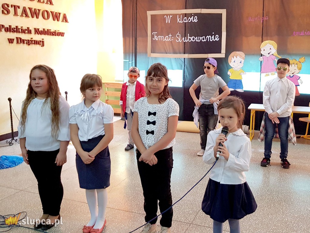 11 października 2019r. to wyjątkowa data dla uczniów klasy pierwszej Szkoły Podstawowej im. Polskich Noblistów w Drążnej. Tego dnia pierwszoklasiści złożyli uroczyste ślubowanie na uczniów naszej szkoły. W tym niezwykłym wydarzeniu towarzyszyli im rodzice, uczniowie klas 2 i 3 oraz zaproszeni goście: dyrektor Centrum Usług Wspólnych Gminy Słupca pani Jarosława Kobos, przewodnicząca Rady Rodziców pani Agnieszka Purul oraz ksiądz proboszcz Tadeusz Stasiak.