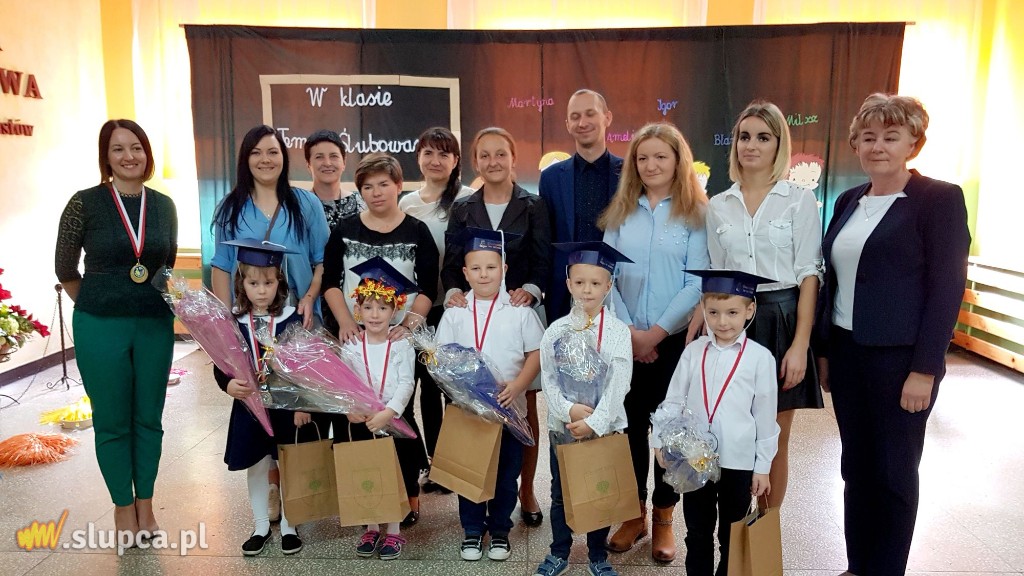 Najważniejszym momentem uroczystości było złożenie przez dzieci ślubowania na sztandar szkoły oraz pasowania, którego dokonała Pani Dyrektor Danuta Samul. Dzieci na pamiątkę tego wydarzenia otrzymały okolicznościowe dyplomy oraz medale.