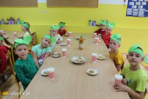 Ten dzień był niewątpliwie ucztą dla kubków smakowych, bowiem „Tygryski” oprócz owoców spożywały różnorodne jabłuszkowe delicje: suszone jabłka, żelki , serek , sok jabłkowy, mus oraz pyszną szarlotkę upieczoną specjalnie dla dzieci.