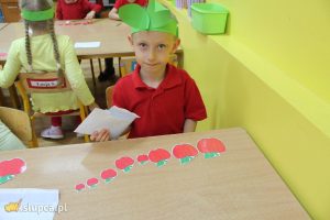 Dzieci w tym dniu dowiedziały się również o tym jak rośnie jabłoń, zobaczyły na ilustracjach etapy rozwoju jabłka, obejrzały na obrazkach jak wygląda sad, praca w sadzie oraz jak jabłko jest zbudowane. Była także okazja do wykonania zadań matematycznych typu przeliczanie jabłek i umieszczanie pomponów na drzewie jabłoni oraz porównywanie wielkości jabłek.