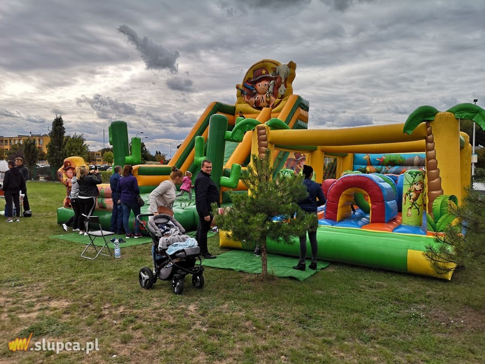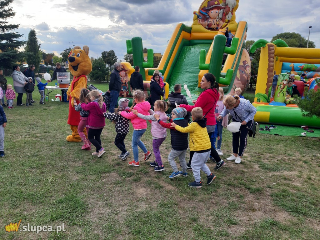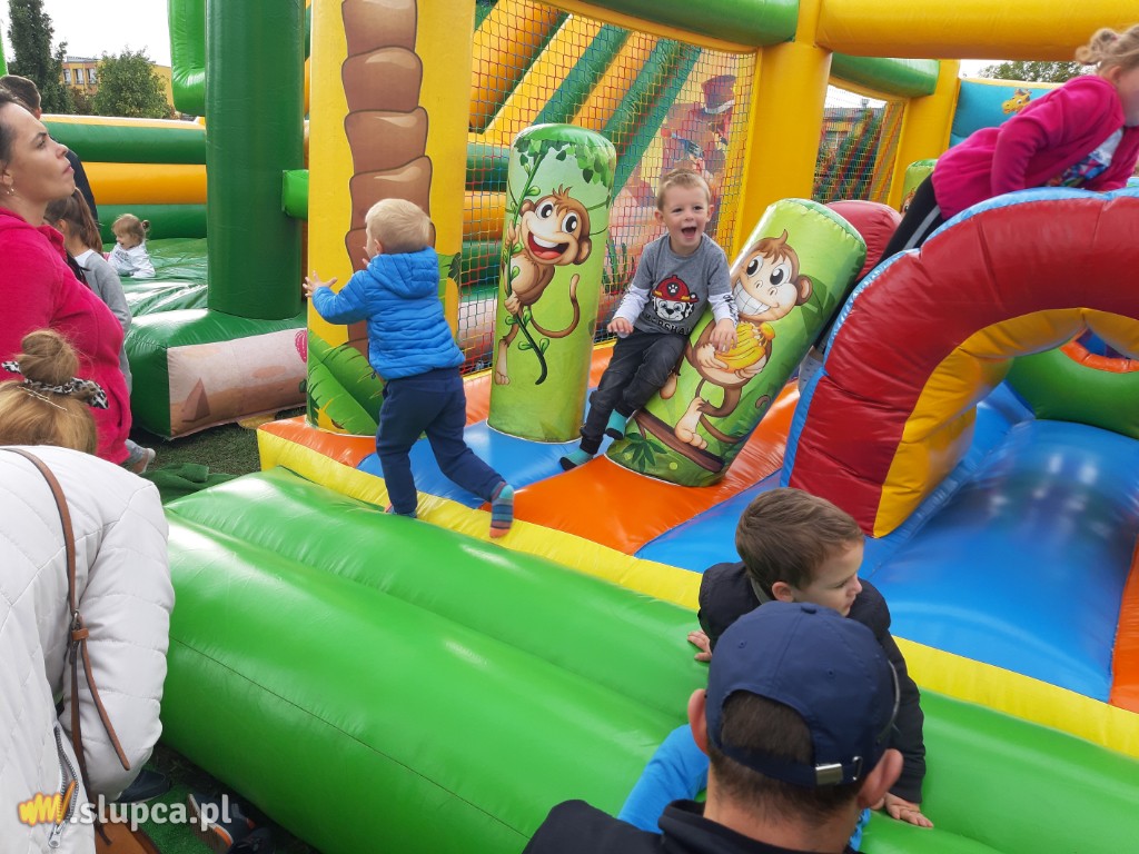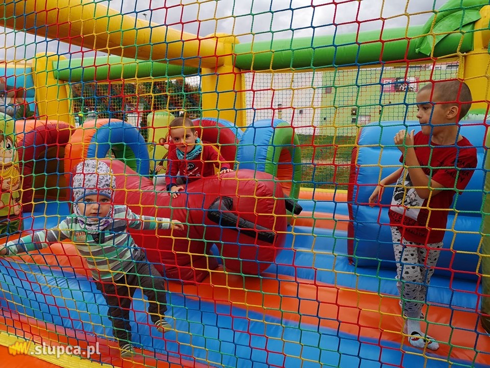 w ogrodzie przedszkolnym z dmuchanymi zamkami, słodką watą cukrową, zabawami z DJ-em oraz przekąskami na pokrzepienie, za które dziękujemy firmie Konspol Bis w Słupcy. Dzieci wraz z rodzicami miały możliwość wcielenia się w rolę malarza – artysty i przygotowania grupowych, kartonowych kryjówek oraz pojazdów na swoją salę.