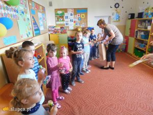 Z tej okazji dzieci uczestniczyły w zabawach, konkursach i tańczyły w rytmach ulubionych melodii. Najserdeczniejsze życzenia złożyła dzieciom Pani Dyrektor Beata Przybylska i wręczyła wspaniałe prezenty. Uroczystość zakończyła się degustacją pysznego tortu i owocową ucztą.