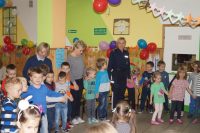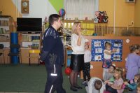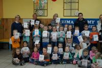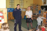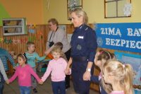 Spotkanie odbyło sie pod hasłem „Po zimowe przygody wyruszamy, o bezpieczeństwie rozmawiamy”. O bezpiecznych zabawach i odpowiednich zachowaniach dzieci w różnych sytuacjach, jakie mogą napotkać w życiu codziennym, rozmawiali z dziećmi dzielnicowy mł.asp. Łukasz Jarząbek oraz st.sierż. Agnieszkan Kurniewicz. Policjanci udzielali porad, wskazywali przykłady właściwych zachowań, sprawdzili też znajomość numerów alarmowych. Na zakończenie spotkania przedszkolaki wraz z nauczycielami zaprosili mundurowych do wspólnej zabawy.