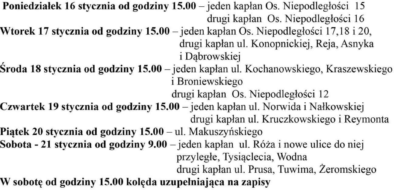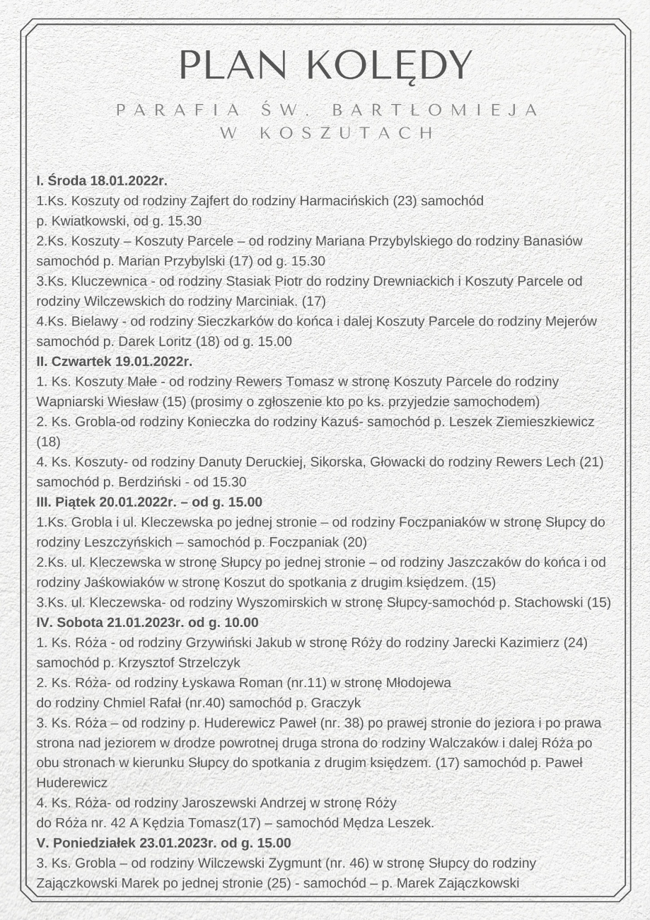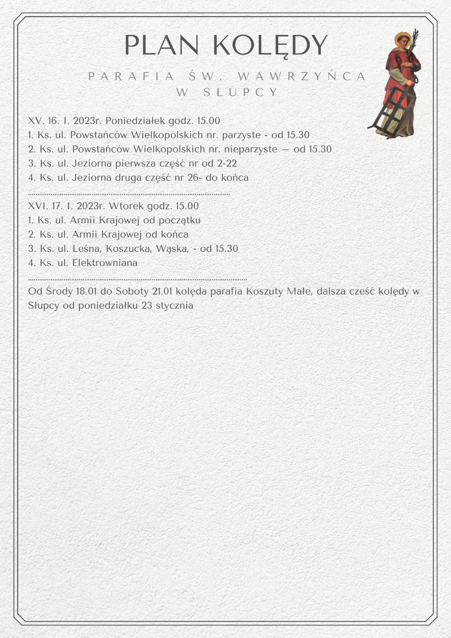 Przedstawiamy plan kolędy na najbliższe dni w słupeckich parafiach pw. św. Wawrzyńca i bł. M. Kozala.