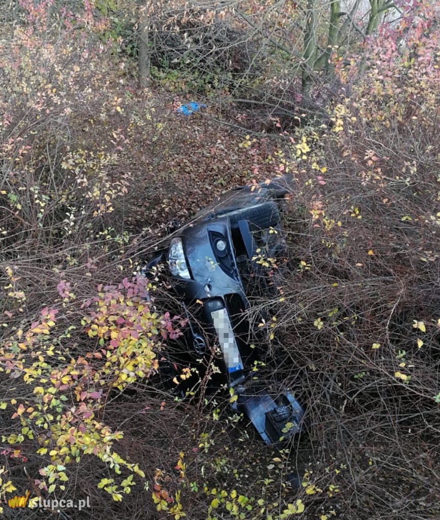 Auto wypadło z drogi, przeleciało kilka metrów w dół i dachowało. – Pasy uratowały mi życie – nie ma wątpliwości Natalia Szpręgiel, która siedziała za kierownicą toyoty auris.
