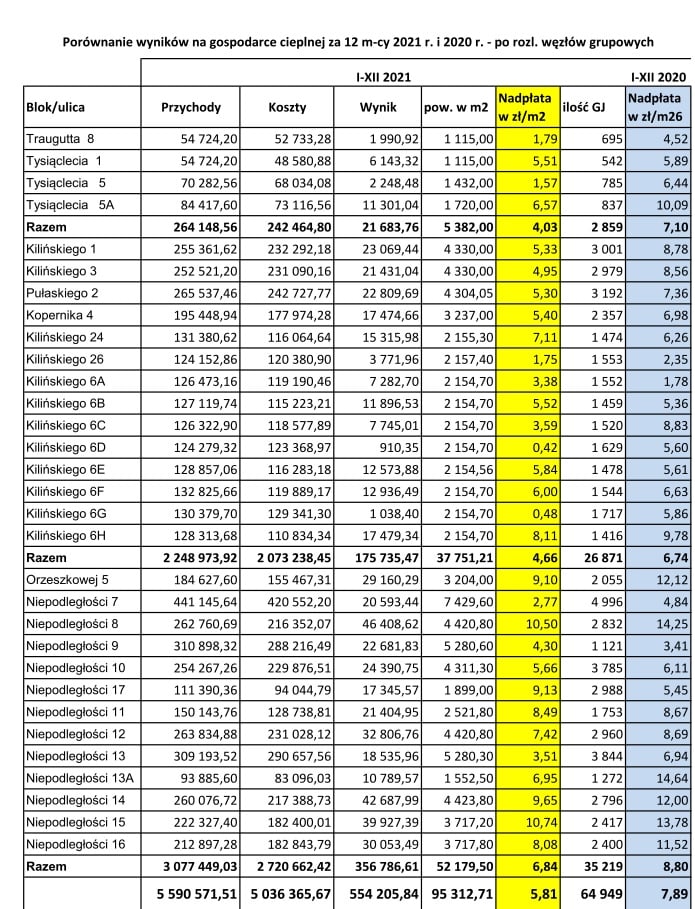 Spółdzielnia Mieszkaniowa w Słupcy przedstawiła rozliczenie ciepła za zeszły rok. W zdecydowanej większości bloków zwroty będą sporo niższe, w porównaniu do poprzedniego okresu rozliczeniowego. Aby wyliczyć, jaką kwotę otrzymasz, musisz pomnożyć kwotę z żółtej tabelki przez ilość metrów swojego mieszkania.