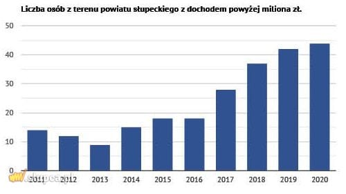 W powiecie słupeckim jest coraz więcej „milionerów”. Pomimo panującej pandemii koronawirusa, w 2020 r. wzrostowa tendencja ostatnich lat została utrzymana, jednakże nastąpił nieznaczny spadek przyrostu osób najlepiej zarabiających, w stosunku do lat poprzednich.