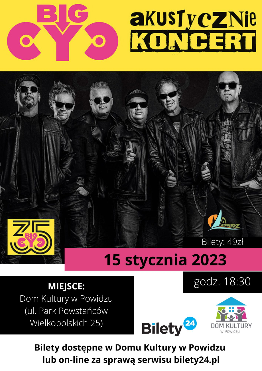 Już w styczniu na scenie Domu Kultury w Powidzu będzie można zobaczyć i usłyszeć zespół Big Cyc. Jak czytamy w mediach społecznościowych organizatorów – zespół zaprezentuje się w lekkim, akustycznym brzmieniu. Wydarzenie zaplanowano na 15 stycznia 2023 roku, o godz. 18:30. Usłyszymy dobrze znane przeboje, jak: „Rudy się żeni”, „Makumba”, czy „Świat według Kiepskich”. Bilety do nabycia w internecie, a także w domu kultury. Szczegóły poniżej.
