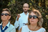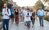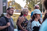 Gościem spaceru był Paweł Grobelny, którego projekt drewnianych okręgów, mikrosceny plenerowej i platformy widokowej otrzymał nagrodę „Property Design Award 2024” w kategorii „Najlepsza przestrzeń publiczna w Polsce”.