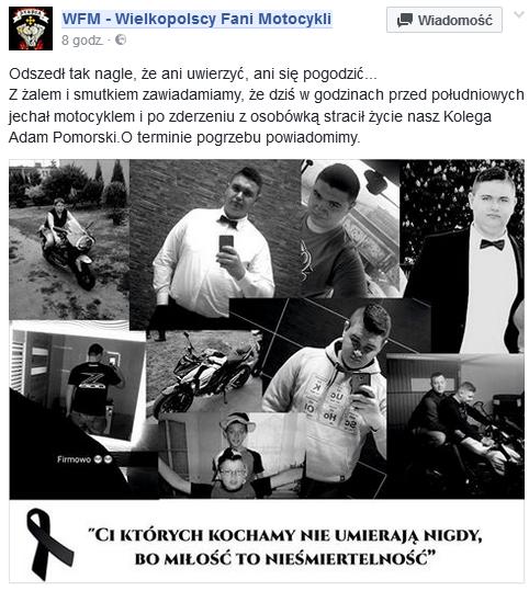 Wczoraj Słupcę obiegła tragiczna wiadomość. W wypadku w Węgierkach zginął 19-letni mieszkaniec naszego miasta. Tragicznie zmarłego Kolegę na swoim profilu na facebooku pożegnali Wielkopolscy Fani Motocykli.