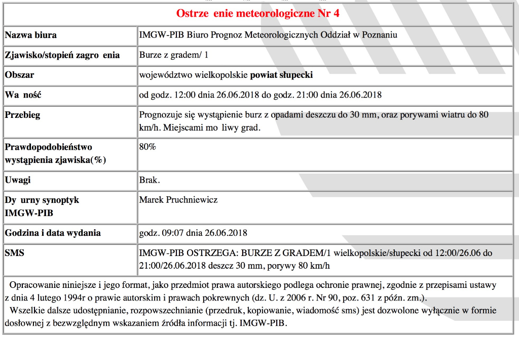 Ostrzeżenie meteorologiczne. Burze z gradem