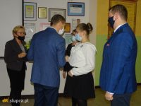 Wczoraj w Szkole Podstawowej Nr 3 najlepsi uczniowie dostali stypendium burmistrza. Wśród stypendystów za osiągnięcia uzyskane w pierwszym półroczu roku szkolnego 2020/ 2021 znaleźli się: Nadia Kubacka, Jakub Kaczorowski, Malwina Filipczak, Zuzanna Kujawa, Malwina Majchrzak. – Wszystkim wyróżnionym bardzo serdecznie gratuluję, również Dyrekcji, nauczycielom i rodzicom – mówi wiceburmistrz Jacek Szczap, który w imieniu burmistrza wręczał stypendia.