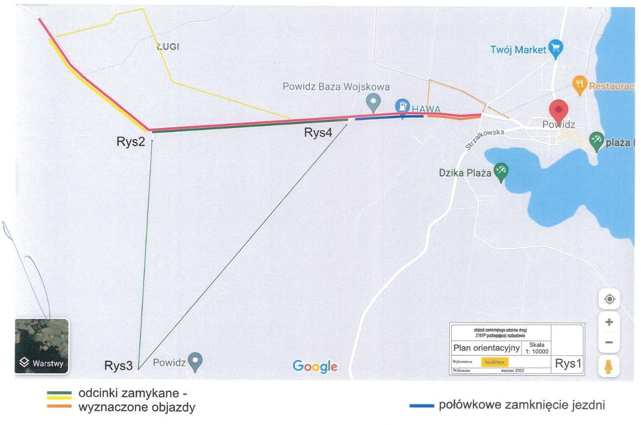 O zmianach informuje starostwo. – Powiat Słupecki podaje do publicznej wiadomości informację, że od dnia 9 maja 2022 roku, ze względu na trwające roboty budowlane przy rozbudowie drogi powiatowej nr 2161P Powidz-granica powiatu (Witkowo), zostanie wprowadzona czasowa zmiana organizacji ruchu w związku z połówkowym zamknięciem jezdni. Objazd zamkniętego odcinka drogi powiatowej nr 2161P przedstawiono na załączonym planie – czytamy na stronie powiatu. Poniżej plan nowej organizacji ruchu.