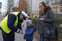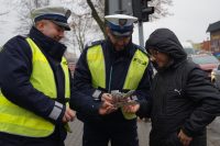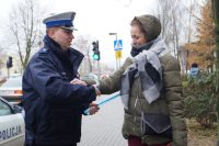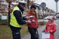 W Mikołajkowe popołudnie policjanci z Wydziału Ruchu Drogowego przygotowali dla mieszkańców powiatu odblaskowe prezenty. Dzięki współpracy z Wojewódzkim Ośrodkiem Ruchu Drogowego w Koninie do rąk dzieci i dorosłych trafiły odblaskowe opaski i zawieszki. Funkcjonariusze przekazywali również zakładki do książek zawierające porady dla pieszych i rozmawiali z obdarowanymi o często niedocenianej roli odblasków. Zwracali uwagę, że kamizelka, czy mały element odblaskowy zaczepiony na naszym ubraniu, może uratować ludzkie życie lub zdrowie. Przekonywali, że dzięki odblaskowi kierowca może dostrzec pieszego z odległości nawet 130-150 metrów i będzie miał czas na właściwą reakcję oraz ominięcie pieszego. Niestety wiele osób myśli, że skoro widzą światła nadjeżdżającego samochodu, to również kierujący tym pojazdem ich widzi.
