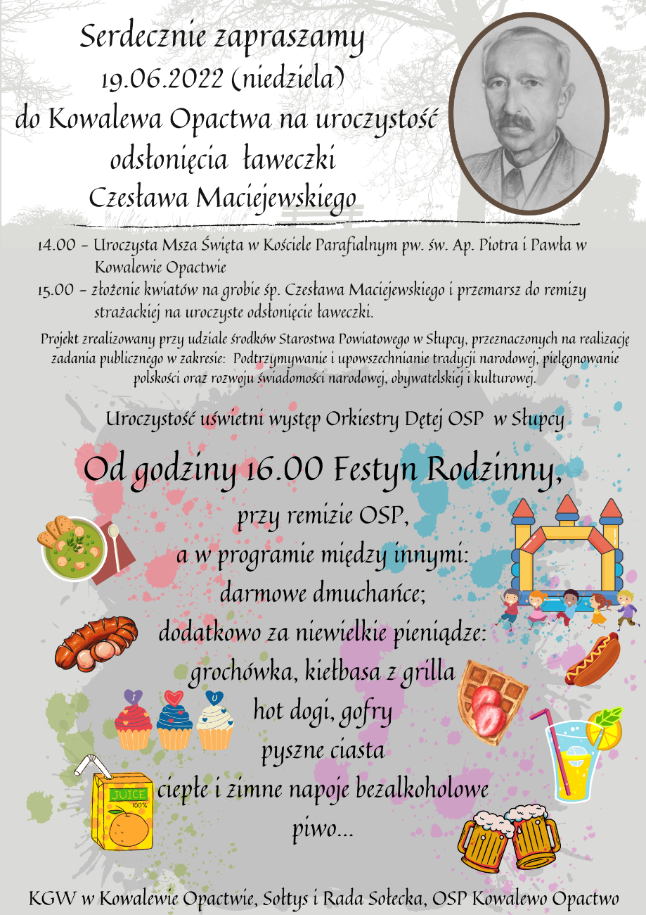 Odsłonią ławeczkę Czesława Maciejewskiego