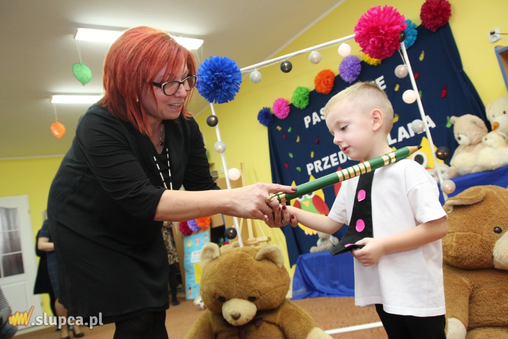 „Pasowanie na przedszkolaka” to pierwsza wyjątkowa uroczystość w życiu dzieci, które we wrześniu tego roku po raz pierwszy rozpoczęły swoją przygodę z przedszkolem. Dnia 21 i 28 listopada takie wydarzenie miało miejsce w przedszkolu nr 2 „Miś”. Od samego rana trwały przygotowania, a w sali gromadzili się goście. Dla najmłodszych było to ogromne przeżycie, ale maluchy z grup „Krasnale” i „Pajace” trzymały się bardzo dzielnie. Z uśmiechami na twarzach recytowały wierszyki, śpiewały piosenki oraz zaprezentowały swoje umiejętności taneczne, otrzymując od rodziców i zaproszonych gości gromkie brawa. Następnie złożyły uroczystą przysięgę , którą przypieczętowały odciskiem palca oraz symbolicznie pokonały próg przedszkolny. Pani dyrektor Urszula Michlicka za pomocą „czarodziejskiego ołówka” dokonała uroczystego „aktu pasowania”, a każdy przedszkolak otrzymał misia oraz dyplom z rąk pani wicedyrektor Barbary Konke. Dla przedszkolaków było to wielkie przeżycie, a dla rodziców i pań nauczycielek powód do dumy i zadowolenia ze swoich pociech.
