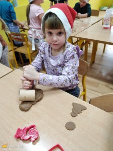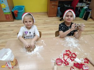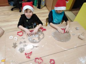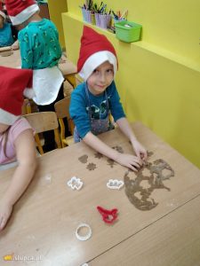 Zadnie dzieci polegało na rozwałkowaniu ciasta oraz wykrawaniu różnych świątecznych kształtów, które kolejno trafiały do pieca. Jednak największą przygodą dla przedszkolaków było dekorowanie pierniczków. Wielkim trudem dla dzieci było powstrzymanie się , aby nie spróbować słodkiego lukru czy kolorowej posypki. Udekorowane pierniczki zostały spakowane dla dzieci, które zabierały do domów aby móc poczęstować w święta swoich bliskich.