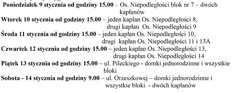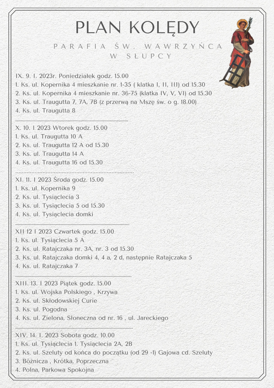 Przedstawiamy plan kolędy na najbliższy tydzień w parafii pw. św. Wawrzyńca i bł. M. Kozala w Słupcy.