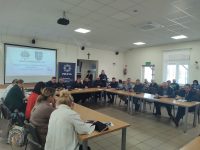 Na spotkaniu w świetlicy w Ostrowitem oprócz mieszkańców gminy gościli: Komendant Powiatowy Policji insp. Roman Ciesielczyk wraz z policjantami, Wójt Gminy Ostrowite Mateusz Wojciechowski, Wice Wójt Małgorzata Wesołowska, Przewodnicząca Rady Gminy Beata Mierzejewska, radni i sołtysi.