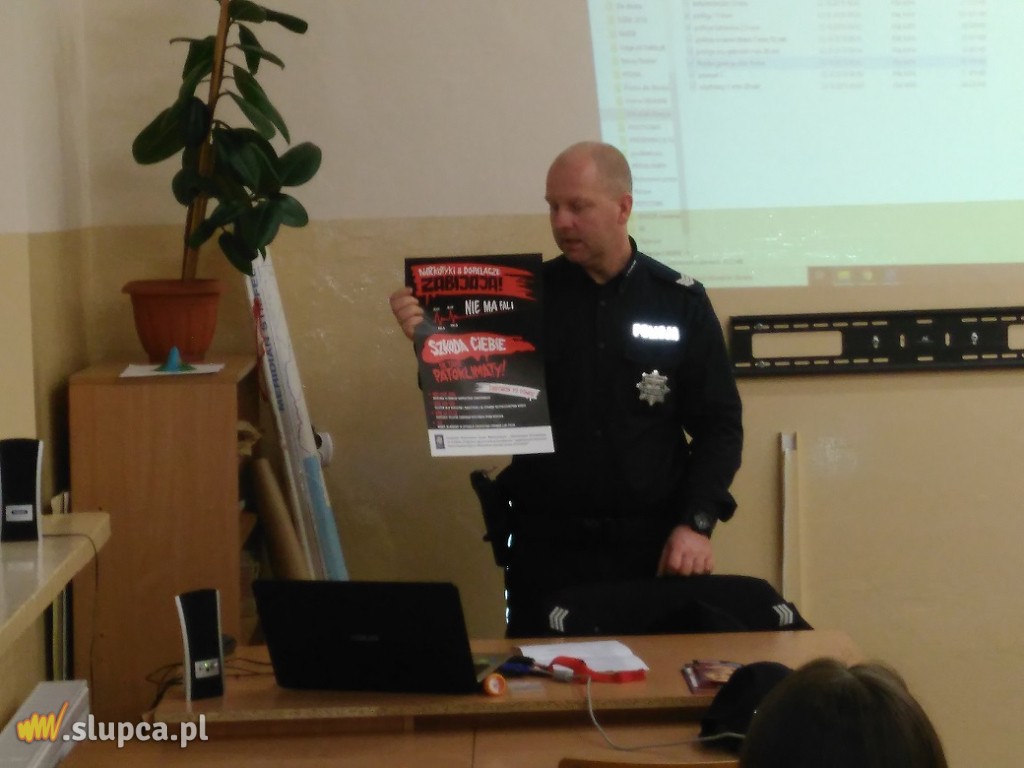 W ramach kampanii edukacyjno – profilaktycznej pn. „Narkotyki i dopalacze zabijają” słupeccy policjanci spotkali się ze starszymi uczniami Szkoły Podstawowej nr 1 w Słupcy. Mundurowi przygotowali specjalną prelekcję, podczas której zaprezentowali spot i hasło towarzyszące kampanii „Szkoda Ciebie na takie patoklimaty” oraz tematyczne filmy. Funkcjonariusze promowali wśród młodzieży zawód policjanta.