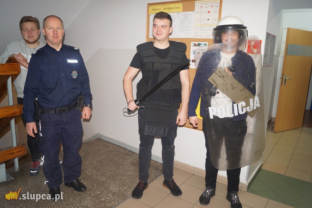 Na początku wizyty uczniowie spotkali się z I Zastępcą Komendanta Powiatowego Policji w Słupcy mł.insp. Janem Rabiejem. Następnie odwiedzili stanowisko kierowania, gdzie zapoznali się z pracą dyżurnego oraz policyjną izbę zatrzymań. Odwiedzający słupecką komendę policji dzięki spotkaniom z policjantami różnych pionów mogli poznać zakres pracy mundurowych i kryminalnych. Dowiedzieli się też, że policja to instytucja, w której nie tylko pracują osoby, które noszą mundur. To także miejsce, gdzie zatrudnienie znajdą pracownicy cywilni np. informatycy, logistycy, pracownicy administracyjno-biurowi.