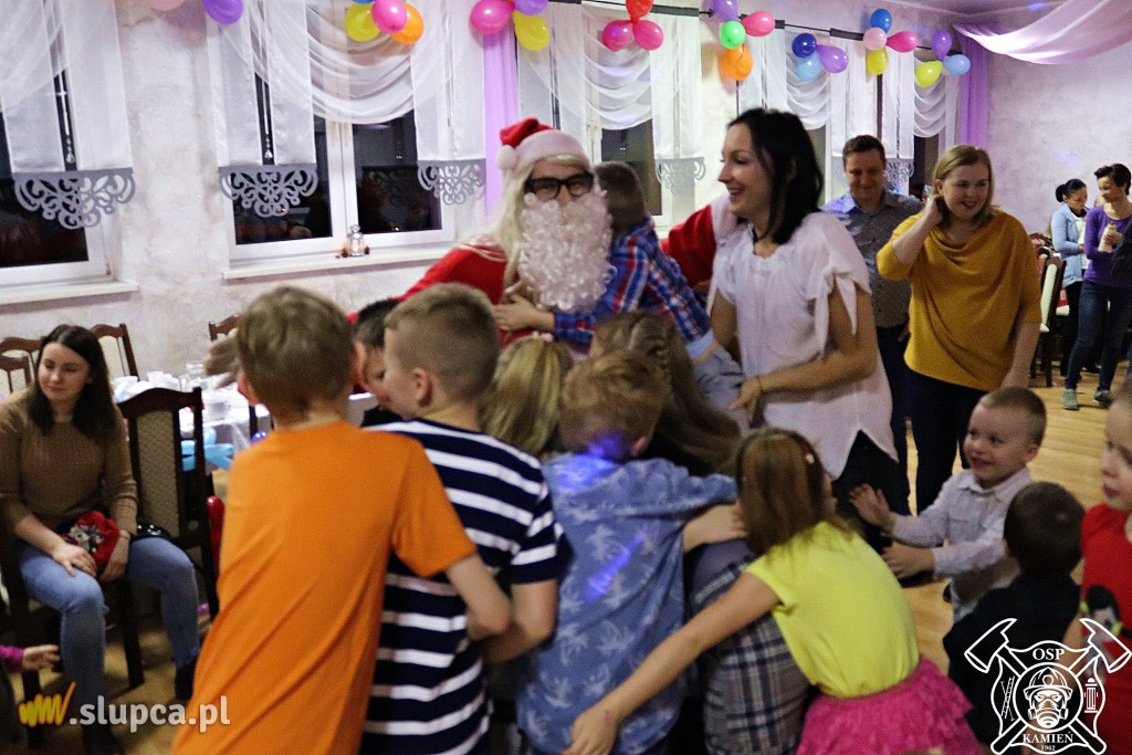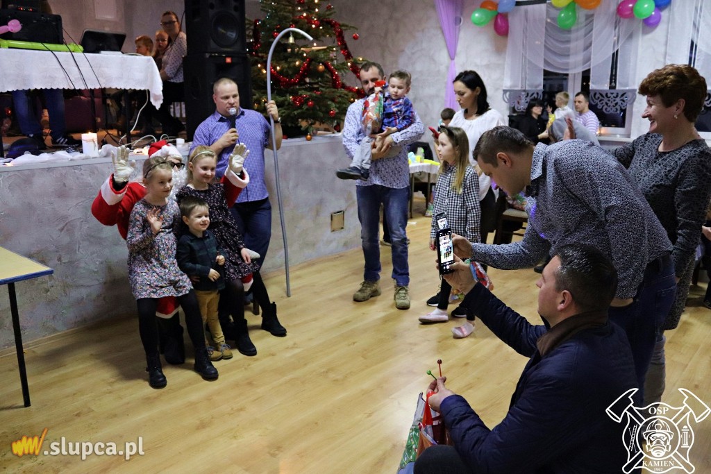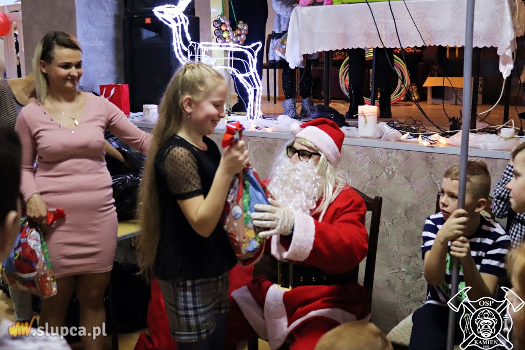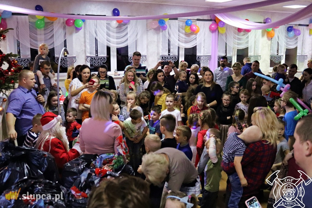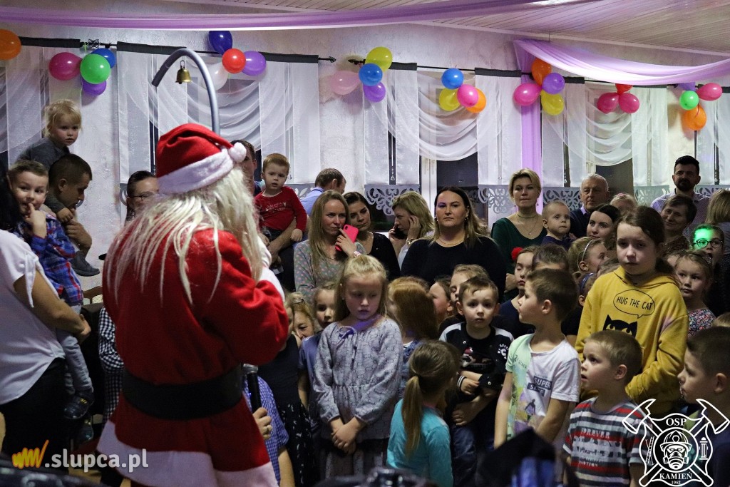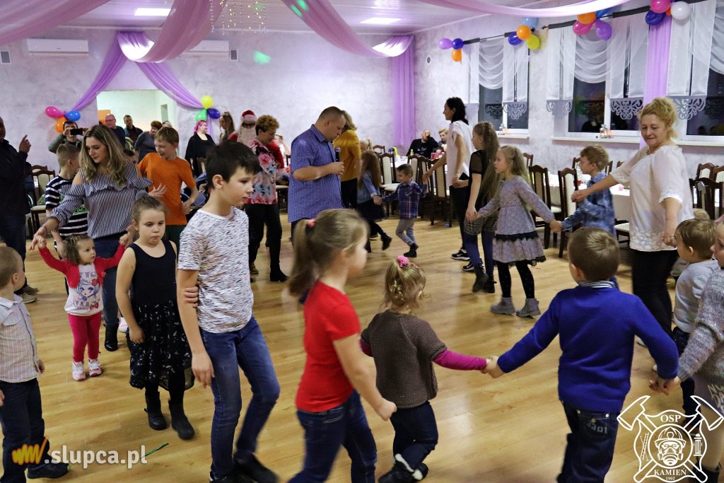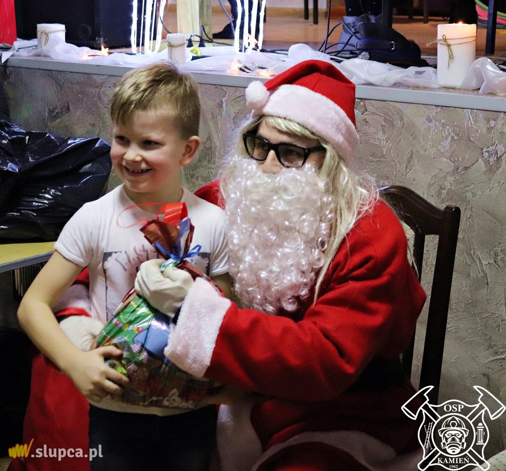 – Zabawa rozpoczęła się o godz. 15. Została poprowadzona przez Kingę Kujawa i Łukasza Gołdycha. Oprawą muzyczną zajął się Patryk Kujawa. Na dzieci czekały liczne zabawy taneczne i konkursy. Główną atrakcją była jednak wizyta Świętego Mikołaja. Jak co roku na pomoc ruszyli mu nasi dzielni strażacy. Z remizy wyjechał zastęp SLRt (specjalistyczny lekki samochód ratownictwa technicznego) wraz z łodzią, na której przyjechał Mikołaj z prezentami. Dzieci z wielką radością przywitały gościa z Laponii. Oprócz prezentów można było zrobić zdjęcie z Mikołajem, a także z nim zatańczyć. Obiecał, że za rok również odwiedzi naszą miejscowość. OSP i KGW w Kamieniu dziękują sponsorom imprezy, a więc Wójtowi Gminy Słupca Grażynie Kazuś i radnemu Łukaszowi Graczykowi. Dziękujemy także Henrykowi Marchlewiczowi za wcielenie się w rolę Św. Mikołaja, Hubertowi Graczykowi za fotorelację oraz Paniom z KGW i naszym druhom za pomoc w organizacji choinki – czytamy na facebooku strażaków z Kamienia.