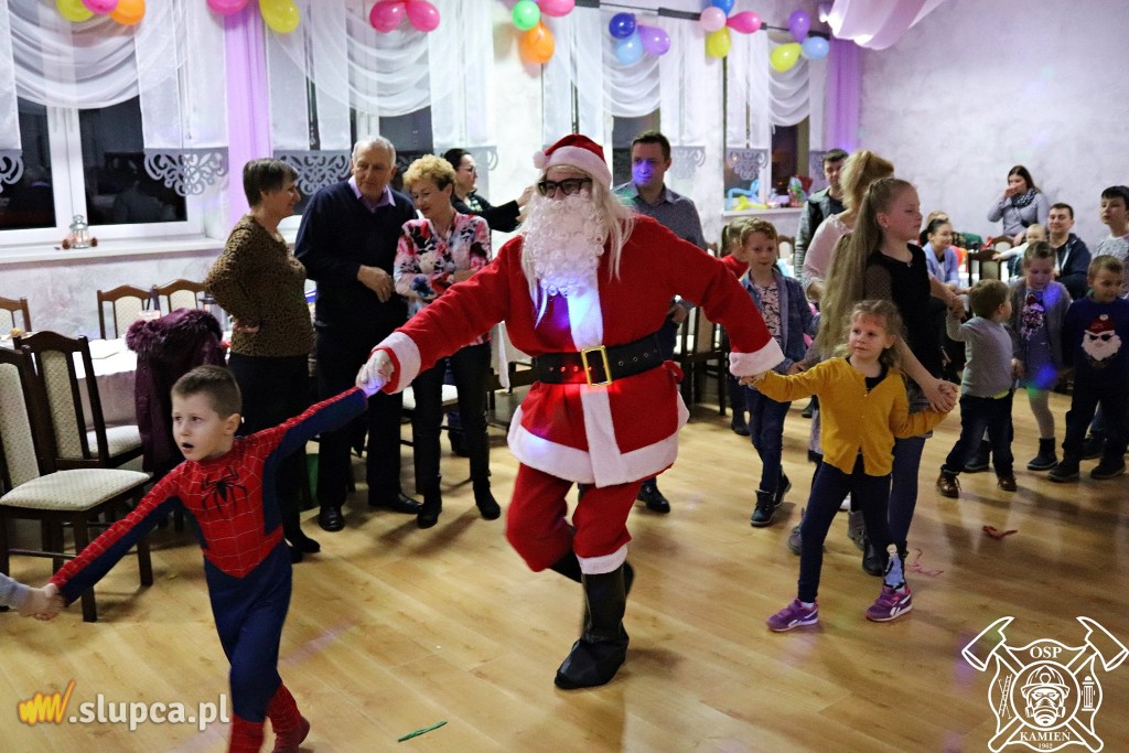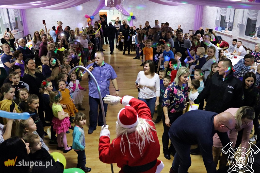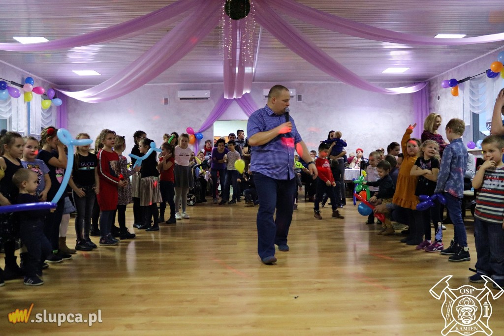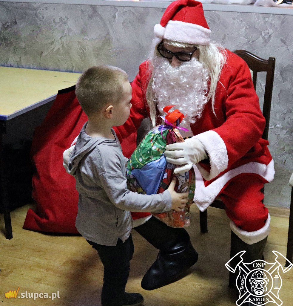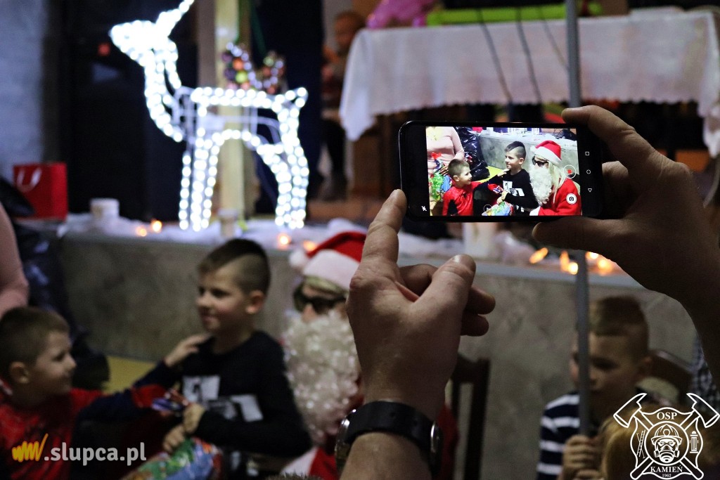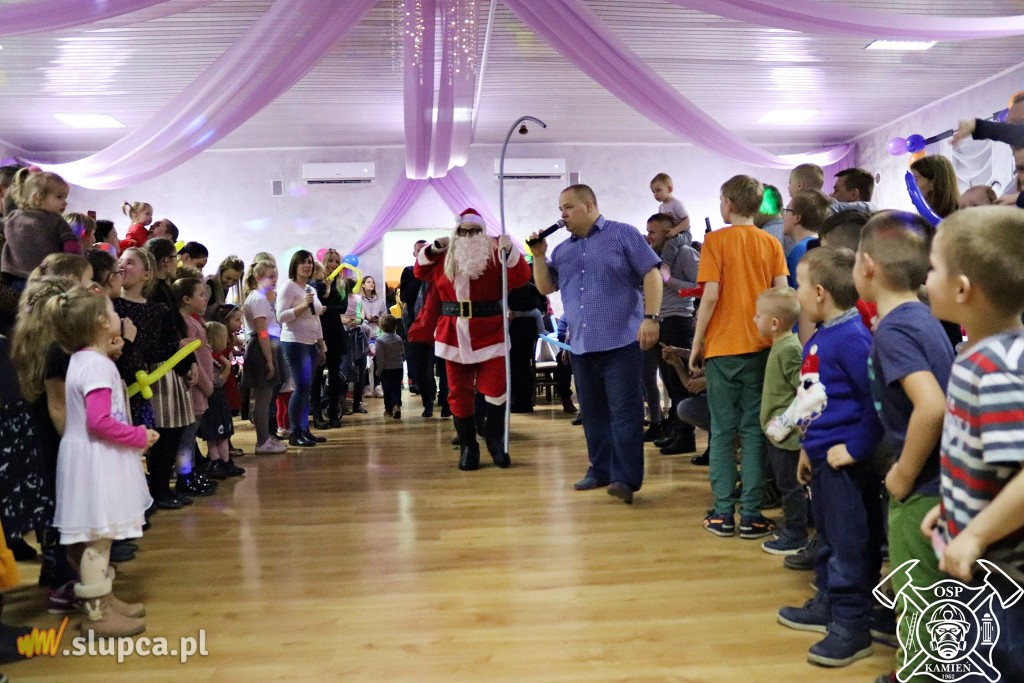 – Zabawa rozpoczęła się o godz. 15. Została poprowadzona przez Kingę Kujawa i Łukasza Gołdycha. Oprawą muzyczną zajął się Patryk Kujawa. Na dzieci czekały liczne zabawy taneczne i konkursy. Główną atrakcją była jednak wizyta Świętego Mikołaja. Jak co roku na pomoc ruszyli mu nasi dzielni strażacy. Z remizy wyjechał zastęp SLRt (specjalistyczny lekki samochód ratownictwa technicznego) wraz z łodzią, na której przyjechał Mikołaj z prezentami. Dzieci z wielką radością przywitały gościa z Laponii. Oprócz prezentów można było zrobić zdjęcie z Mikołajem, a także z nim zatańczyć. Obiecał, że za rok również odwiedzi naszą miejscowość. OSP i KGW w Kamieniu dziękują sponsorom imprezy, a więc Wójtowi Gminy Słupca Grażynie Kazuś i radnemu Łukaszowi Graczykowi. Dziękujemy także Henrykowi Marchlewiczowi za wcielenie się w rolę Św. Mikołaja, Hubertowi Graczykowi za fotorelację oraz Paniom z KGW i naszym druhom za pomoc w organizacji choinki – czytamy na facebooku strażaków z Kamienia.