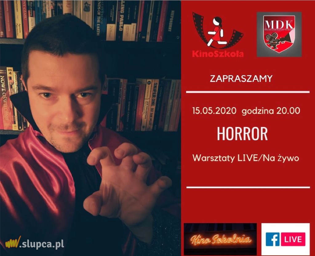 Miejski Dom Kultury w Słupcy i Program Edukacji Medialnej i Społecznej KinoSzkoła zapraszają na pierwsze warsztaty na żywo. – Już w piątek 15.05 o godz.20.00 na facebookowym profilu Miejskiego Domu Kultury w Słupcy odbędą się warsztaty, podczas których będziemy rozmawiać o horrorach. Każdy uczestnik będzie miał szansę podzielić się swoimi ciekawostkami na temat filmów grozy. Rozmowa i oglądanie mrożących krew w żyłach scen będzie się odbywała na żywo. Daje to świetną okazję do rozmowy z prowadzącym i innymi uczestnikami. Wspólnie stworzymy ranking dziesięciu najlepszych horrorów wszechczasów. Podpowiemy też jak bronić się przed wampirami, wilkołakami i zombie! Zapraszamy do zapisów w wydarzeniu nafacebookowym profilu Miejskiego Domu Kultury w Słupcy – zapraszają pracownicy MDK.
