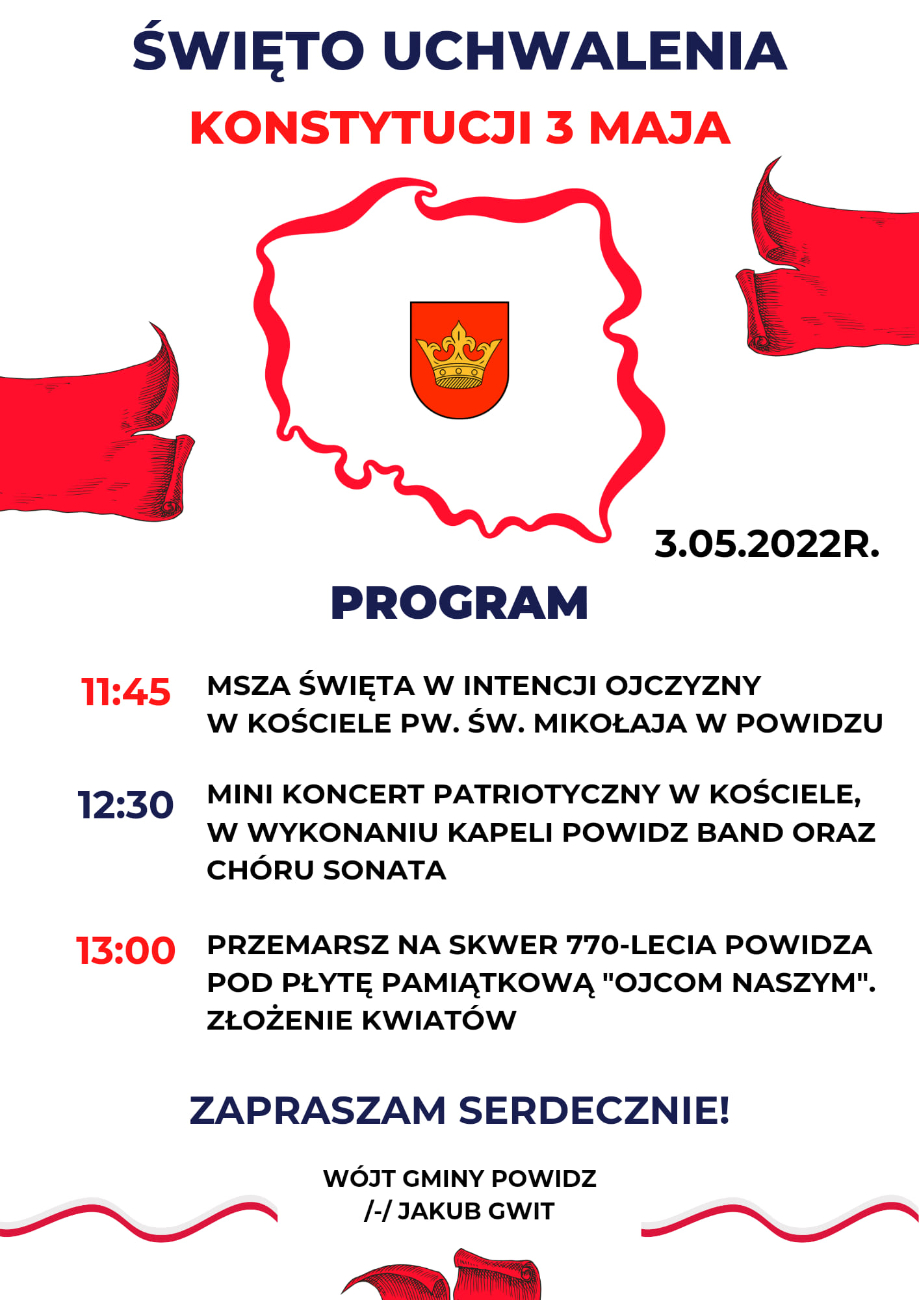 Już w najbliższy wtorek – Święto Uchwalenia Konstytucji 3 Maja! Gmina Powidz zachęca do udziału w gminnych obchodach tego ważnego wydarzenia!
