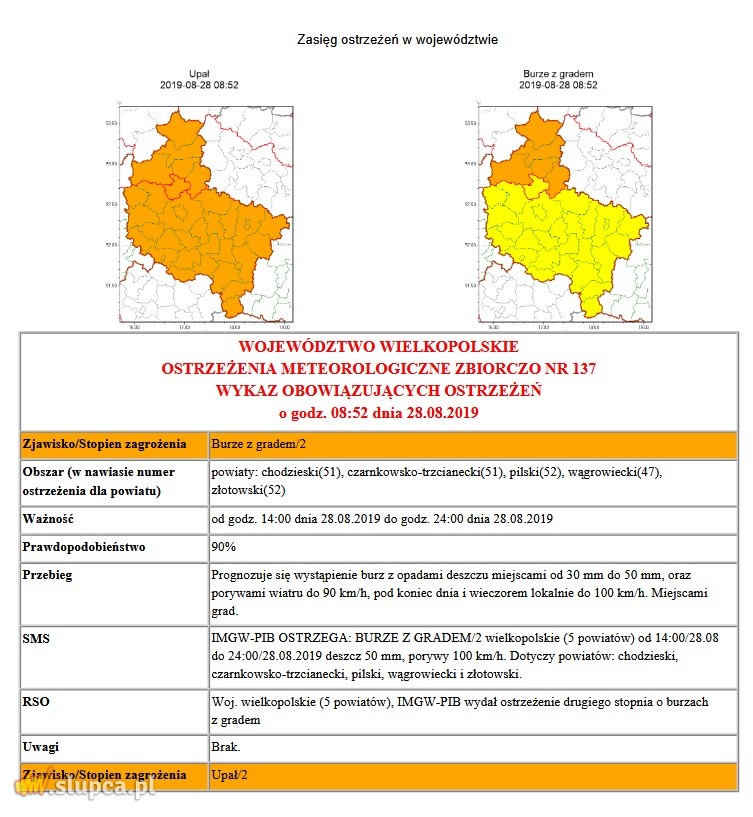 Prognozują wystąpienie burz z opadami deszczu i gradu