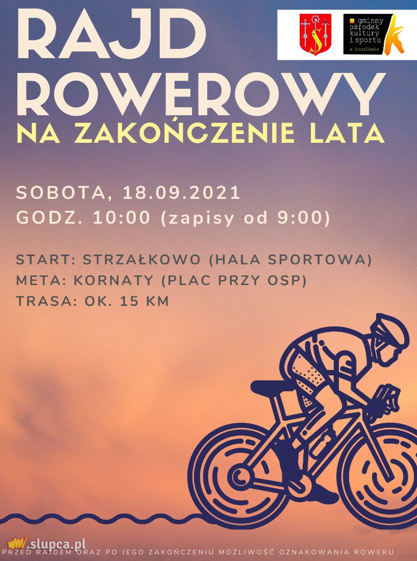 W sobotę, 18 września na terenie gminy Strzałkowo odbędzie się rajd rowerowy na zakończenie lata. Rajd wystartuje o godz. 10:00 sprzed hali sportowej przy ul. Górnej w Strzałkowie. Zapisy rozpoczną się godzinę wcześniej. Uczestnicy będą mieli do pokonania kilkunastokilometrową trasę wiodącą m.in. przez Katarzynowo, Janowo, Ostrowo Kościelne i Kornaty, gdzie zaplanowano zakończenie rajdu i poczęstunek. Po drodze na rowerzystów czekać będą zadania do wykonania. Dla wszystkich przewidziano upominki, a dla najlepszej drużyny nagrody.