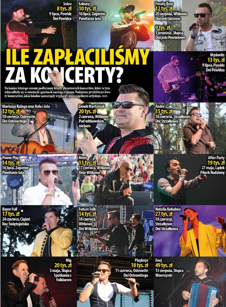 Na koniec letniego sezonu podliczamy koszty plenerowych koncertów, które w tym roku odbyły się w miastach i gminach naszego regionu. Sprawdź, ile skasował każdy z zespołów.