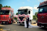 Izabela zd. Kramska i Michał Dzierżyński poznali się kilka lat temu w restauracji. – Ja byłam kelnerka, a Michał był kierowcą – wspomina Iza. Ich znajomość rozwinęła się jednak trochę później. Gdy już się spotykali, Michał zdecydował się zrobić prawo jazdy na ciężarówkę. – To był ciężki czas, cały tydzień go nie było ze mną. Czasem jeździłam z nim w trasę i od samego już początku spodobało mi się to – mówi Iza. W końcu stwierdziła, że również zostanie kierowcą ciężarówki. – Skończyłam studia na kierunku wychowanie fizyczne, ale nie mogłam się nigdzie dostać do szkolnictwa, więc stwierdziłam, że spróbuje swoich sił i też zrobię sobie prawo jazdy C+E. Kursy sprawiały mi ogromną radość, zawsze nie mogłam się ich doczekać więc już czułam, że to będzie początek pięknej historii – opowiada mieszkanka Zagórowa. Egzaminy zdała bez problemu. Zaraz po nich Iza i Michał zaczęli szukać pracy dla podwójnej obsady. Razem jeżdżą od lutego 2020. – Wszyscy znajomi i rodzina podziwiają nas za to, że przebywamy ze sobą 24 godzin na dobę, codziennie, a nasza miłość wciąż kwitnie. Nigdy się ze sobą nie nudzimy. Jeździmy po całej Europie, więc gdy tylko mamy dłuższa pauzę wychodzimy coś pozwiedzać, poznać lokalną kuchnię. Nie jest to łatwa praca, nasza doba trwa 30 godzin, 21 godzin dziennie pracujemy, a 9 godzin śpimy. Kosztuje nas bardzo dużo wyrzeczeń. Nigdy nie wiemy jaka będzie sytuacja na drodze i czy zdążymy wrócić do domu. Pracujemy głównie nocami, ale mimo to nie wyobrażamy sobie innej pracy, bardzo ją polubiliśmy i stała się naszą pasją. Na pauzach poznaliśmy wiele ciekawych ludzi, z którymi się przyjaźnimy i którzy byli u nas też na weselu – opowiadają Iza i Michał, którzy od 10 lipca są małżeństwem. Bardzo długo czekali na ten dzień. Wystarczy wspomnieć, że przez pandemię aż trzy razy zmuszeni byli przekładać ślub. – Mimo wszystko bardzo chcieliśmy mieć ślub i niezapomniane wesele. Mam nadzieję, że takie nam wyszło – mówią. Teraz zajmują się dalszymi planami na życie, przede wszystkim budową wymarzonego domu. Życzymy realizacji tych i wszystkich innych planów!