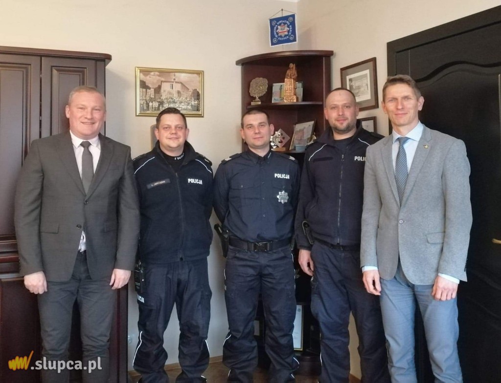 Od dziś w Słupcy pracują nowi dzielnicowi. To Arkadiusz Miętkiewicz (w środku) oraz Paweł Nowak (z prawej). Zespół dzielnicowych uzupełnia pracujący już od kilku lat na tym stanowisku Łukasz Jarząbek. Dziś dzielnicowi odwiedzili urząd, by przedstawić się burmistrzom Słupcy.