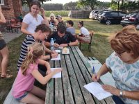 Gości powitała Prezes SPON Irena Jaworska wraz z wójtem Dariuszem Grzywińskim. Gospodarze miejsca w osobach Franciszka i Roberta Gwiazdy przygotowali ciekawe prelekcje o historii miejsca, które jest siedzibą koła łowieckiego, o zwyczajach myśliwych, a także ciekawostki o zwierzynie leśnej i polnej. Obecny na spotkaniu policyjny profilaktyk przypominał o zasadach bezpiecznego wypoczynku nad wodą, zachęcał do udziału w tematycznych konkursach. Następnie przyszedł czas na biesiadę, gry i zabawy oraz niekończące się rozmowy dawno niewidzianych znajomych.