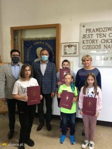 Zastępca Wójta Gminy Słupca Cezary Przybylski oraz Przewodniczący Rady Gminy Jerzy Kopczyński wręczyli uczniom Szkół Podstawowych z terenu gminy Słupca stypendia naukowe, stypendia sportowe oraz stypendia artystyczne.