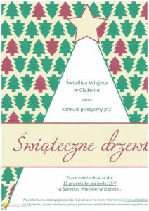 Zapraszamy do udziału w konkursie plastycznym o tematyce świątecznej,proszę zapoznać się z regulaminem. Zachęcamy do udziału, święta coraz bliżej. Nagrody czekają.