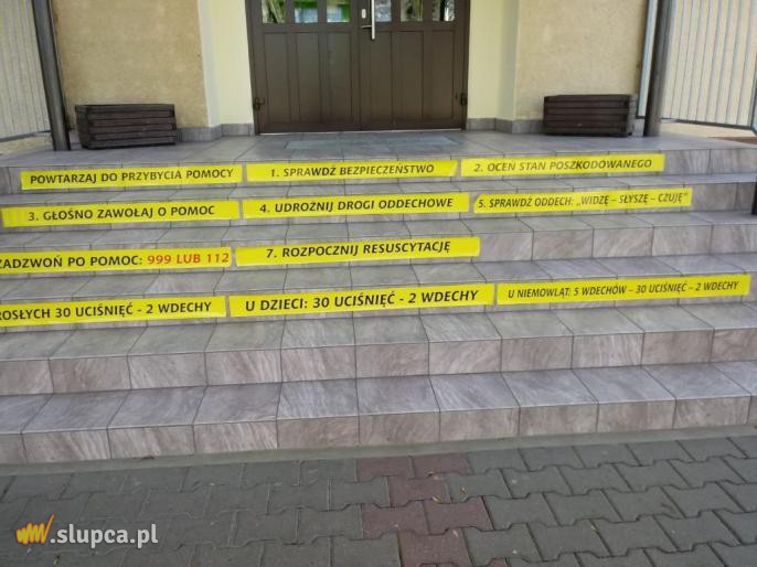 Na schodach szkoły w Ostrowitem pojawiła się instrukcja, jak uratować komuś życie. Na taki pomysł edukacji uczniów wpadł radny Sławomir Pająk.