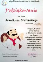 We wtorek, 8 lutego Niepubliczne Przedszkole w Słowikowie gościło Arkadiusza Stefańskiego, Szefa Kuchni w Restauracji Jabłona w Powidzu. – Pan Arkadiusz przybliżył dzieciom czym się zajmuje, gdzie można go spotkać oraz zaprezentował jak wygląda strój Szefa Kuchni. Po części teoretycznej przedszkolaki przystąpiły do działania i wspólnie z Szefem Kuchni przygotowały składniki potrzebne do przygotowania pizzy. Kroiły pieczarki, szynkę, pomidory, ścierały na tarce żółty ser. Każdy miał okazję przygotować swoją, wyjątkową pizzę – w końcu 9 lutego obchodzony jest Międzynarodowy Dzień Pizzy. Po skończonych zajęciach nadszedł czas na podziękowania, dyplomy oraz wspólne zdjęcia… Dziękujemy panu Arkadiuszowi za poświęcony czas i przybliżenie przedszkolakom zawodu kucharza. Kto wie, może ktoś pójdzie w Jego ślady… Podziękowania również dla Koła Gospodyń Wiejskich Słowik za możliwość przeprowadzenia zajęć w pięknie wyremontowanej kuchni – relacjonuje Niepubliczne Przedszkole w Słowikowie.
