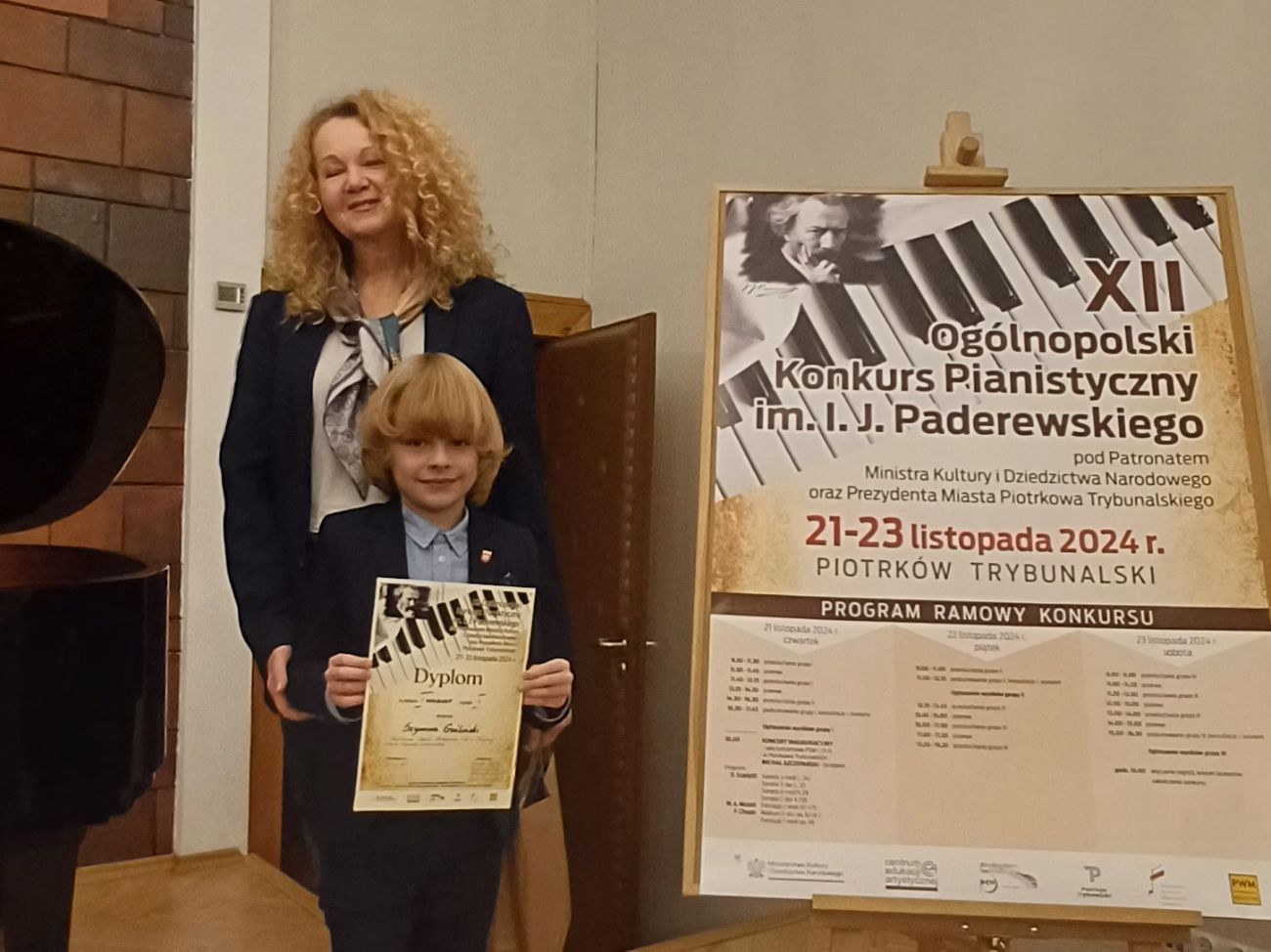 – Szymon był najmłodszym uczestnikiem konkursu, otrzymując najwyższą punktację 24,4 pkt (max. 25). Brawo Szymon! Podczas koncertu laureatów zagrał aż trzy utwory z repertuaru konkursowego. Jury pod przewodnictwem prof. W. Wojtala (Akademia Muzyczna im. St. Moniuszki w Gdańsku) postanowiło również przyznać dyplom dla p. Danuty Gościńskiej za przygotowanie laureata konkursu. Konkurs pod Patronatem Ministra Kultury i Dziedzictwa Narodowego oraz Prezydenta Miasta Piotrkowa Trybunalskiego odbywał się w dn. 21- 23 listopada 2024r. w Państwowej Szkole Muzycznej I i II stopnia w Piotrkowie Trybunalskim. Organizatorami konkursu było Centrum Edukacji Artystycznej oraz Państwowa Szkoła Muzyczna I i II stopnia w Piotrkowie Trybunalskim – informuje Szkoła Muzyczna I st. w Słupcy, której Szymon jest uczniem.